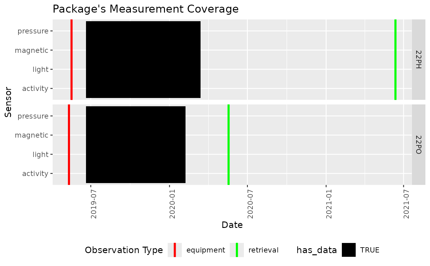Creates visualizations for a GeoLocator Data Package, including coverage plots showing data availability across time for different sensors and tags.