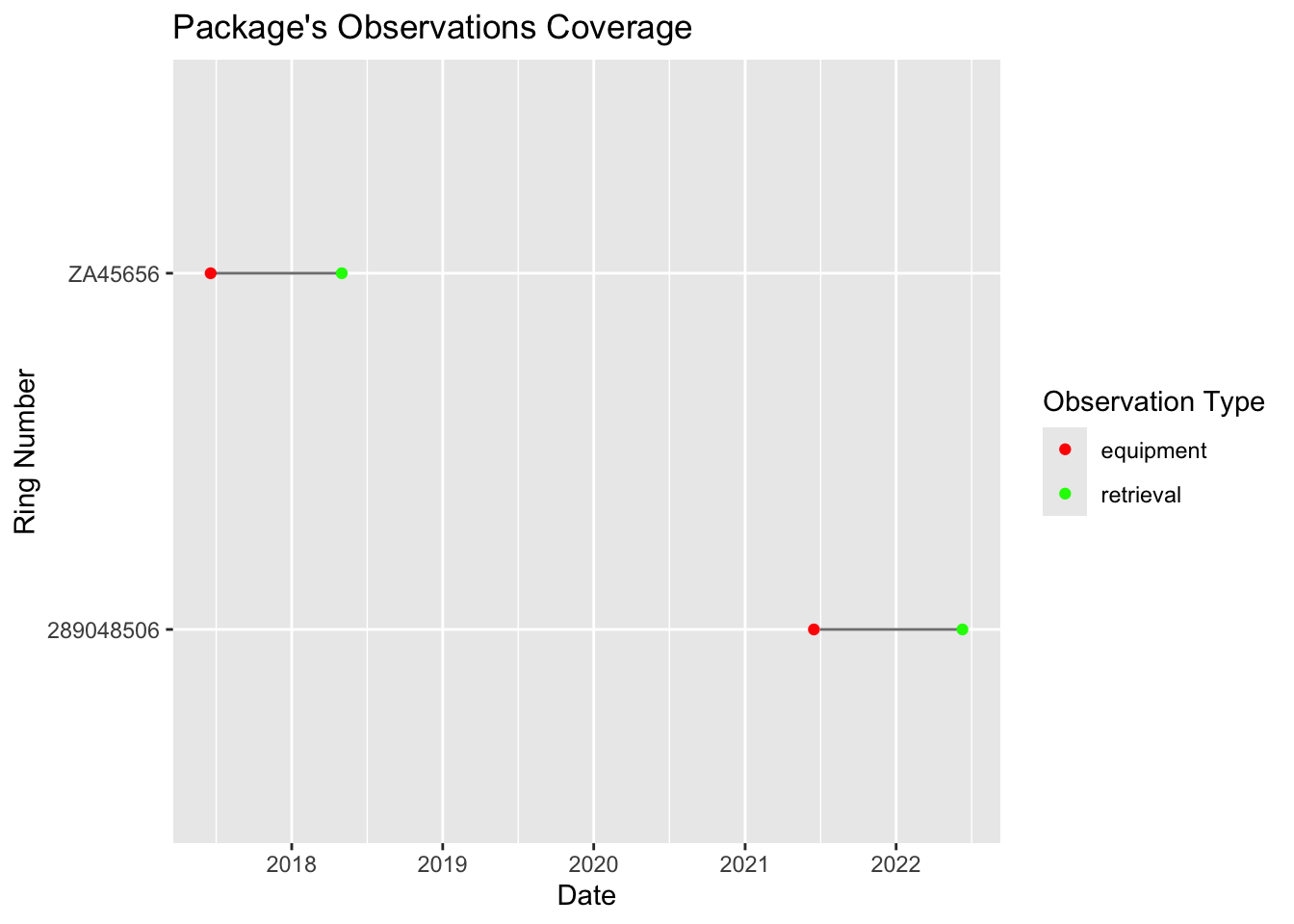 In this final stage, we check the coverage, tag count, and deployment/retrieval consistency to avoid outliers or missing information. To do so, plot each variable and check that (1) all the ring numbers are present, (2) all measurements are correct and no information is missing and (3) trajectories are correct.