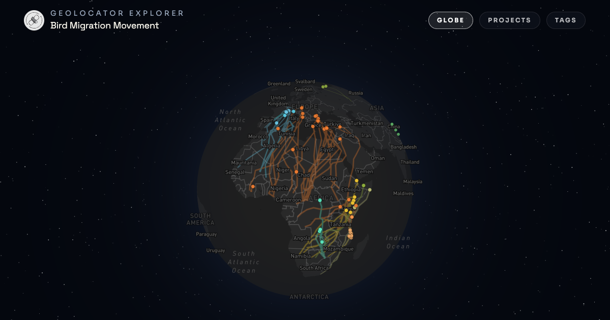 This second example demonstrates combining multiple resources with joins and filtering with the question of synchroneity of migration timing across different flyways crossing path in Southern Africa (< -4°).