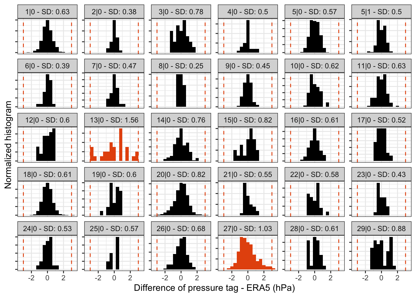 elev_xlabel. - The red vertical dotted line indicates +/-3 sd which can be helpful to identify potential outliers.